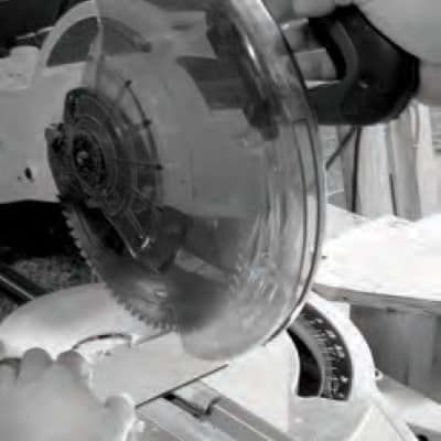 If cutting tiles is necessary, using a chop saw is the recommended cutting method. Be sure to follow all safety procedures, including using safety eyewear, when using saw (Picture D).