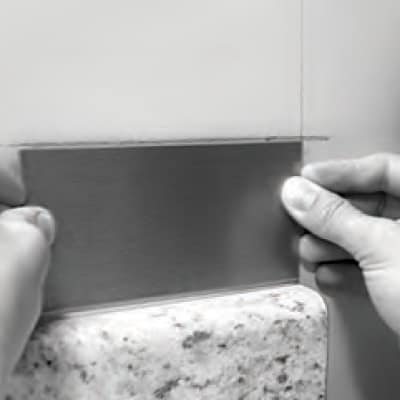 To finish the edges of your tile backsplash, Aspect trim is available to match every tile finish. A second option is to seal the outside edges with caulk using the same materials and method used to seal the gap under the bottom row of tiles.